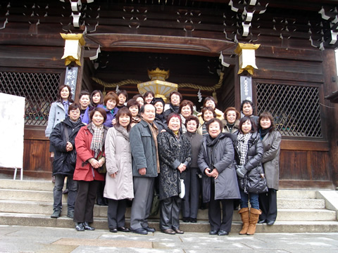 京都研修ということで寒さを覚悟していましたが、以外にも、寒くなく1日目は、雨ながら西本願寺、東寺、伏見稲荷、清水寺、二条城と世界遺産を多く拝観し夕方から研修を全日空ホテルにて受けましたが、宿泊したホテルの、隣でしたので、とても便利でした。計画して頂いた役員の方々に感謝します。今回は、ヘアーと着付けは、同じ時間帯だったのでどちらも受ける、かたたちには、残念でした。